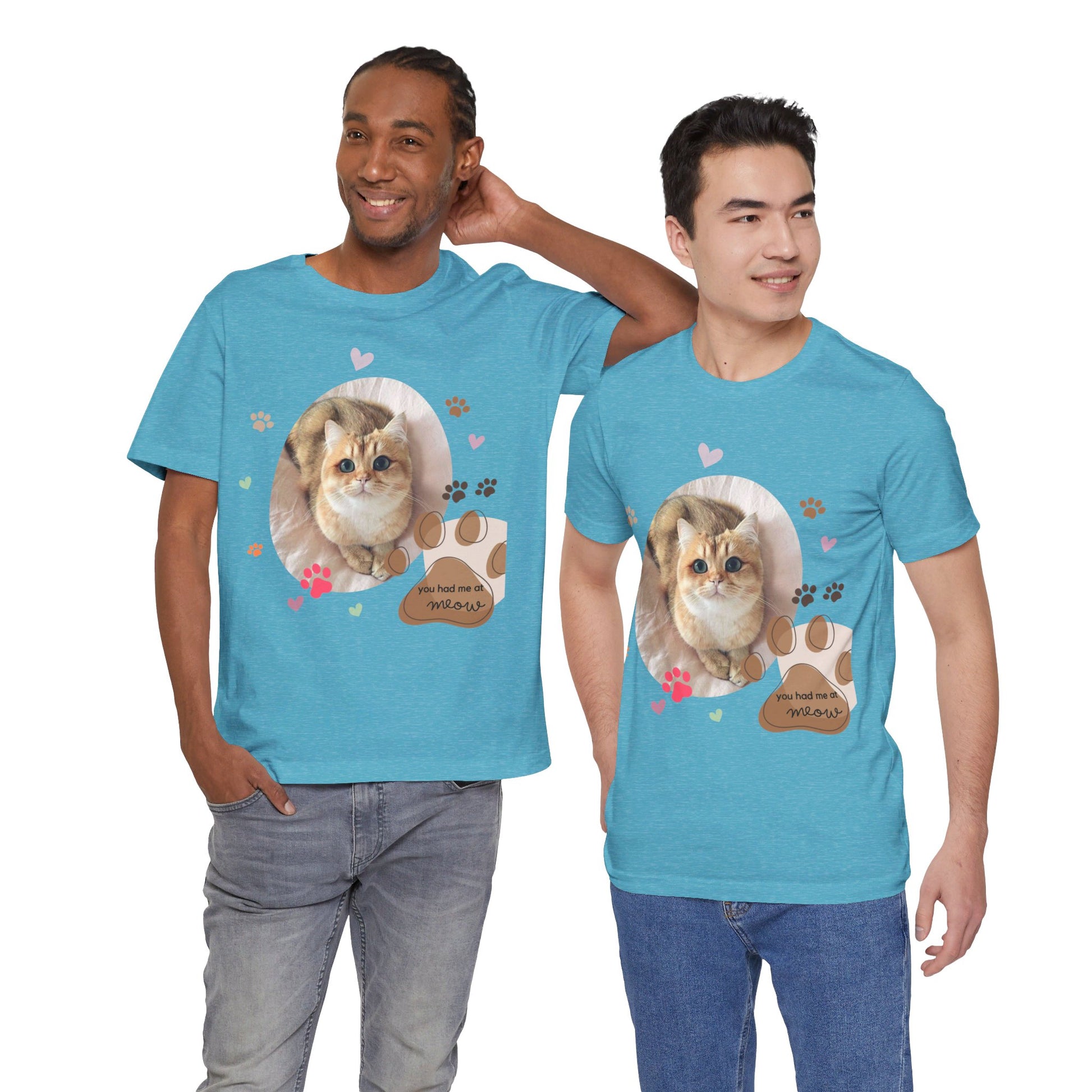 • Achieve purrfection with our Purrfection in Every Paw T-Shirt. This tee captures the essence of cat love with an adorable kitty image, playful paw prints, and the loving message "You had me at meow." Made from high-quality, breathable fabric, this shirt is designed for comfort and style, making it an excellent gift for yourself or the cat lover in your life. • Wrap yourself in the cuteness of our Cuddle Cat Tee. Featuring an endearing cat graphic surrounded by pastel-colored paw prints and the heartwarming phrase "You had me at meow," this T-shirt is a celebration of all things feline. Perfect for casual outings or cozy days at home, this shirt is made from soft, durable materials that ensure a comfortable fit. It's a must-have for any cat lover’s collection. • Embrace your love for cats with our Meow Magic T-Shirt. Featuring an irresistibly cute cat design surrounded by colorful paw prints and the endearing phrase "You had me at meow," this tee is perfect for cat enthusiasts who want to showcase their feline affection. Made from soft, comfortable fabric, this shirt is ideal for casual wear, making it a purr-fect addition to your wardrobe. • Celebrate your bond with your furry friend with our Paws & Hearts Cat Lover Tee. This adorable T-shirt showcases a charming kitty with playful paw prints and hearts, complemented by the sweet message "You had me at meow." Crafted from premium cotton, it offers both style and comfort, making it a must-have for any cat lover. Wear it proudly on your next outing or while lounging at home with your pet. • Show off your feline fancy with our Feline Fancy Graphic Tee. The front features a delightful cat image, framed by paw prints and a whimsical heart design, all highlighted by the phrase "You had me at meow." Perfect for anyone who adores cats, this soft and durable T-shirt is as cozy as it is cute. Pair it with your favorite jeans for a casual look that’s full of personality. |